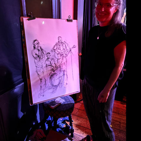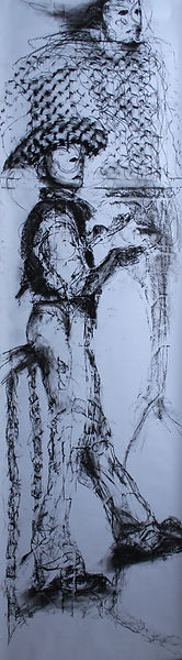 "Gemma Cook, in overalls, down on the floor, amid swirls of charcoal, long screeds of paper filling with expressive marks, semi-human forms; reflective creative understandings of the meanings we’ve been making, the questions we’ve been asking. Ivon Hitchens would have nodded and smiled."
